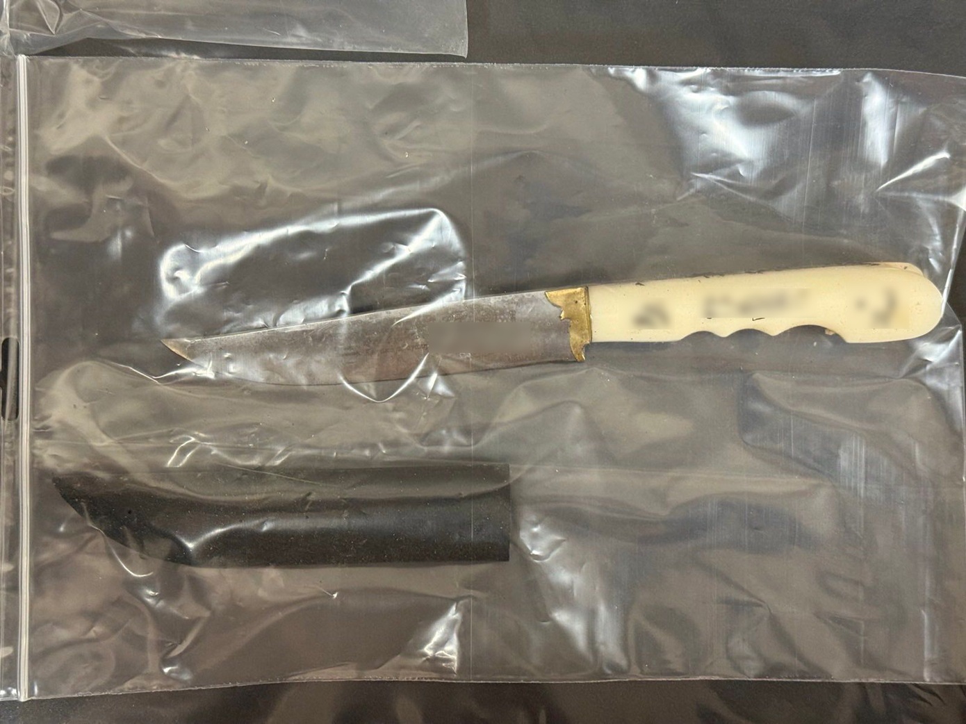 Πρόκειται για ένα κρητικό παραδοσιακό μαχαίρι που φαίνεται να είχε πάρει ως δώρο ο δράστης, και στη λάμα του οποίου, όπως συνηθίζεται, έχει χαραγμένη μία μαντινάδα που λέει: «Στον αδελφό μου σήμερα που πάντα ξεχωρίζω, ένα μαχαίρι Κρητικό με αγάπη του χαρίζω».
