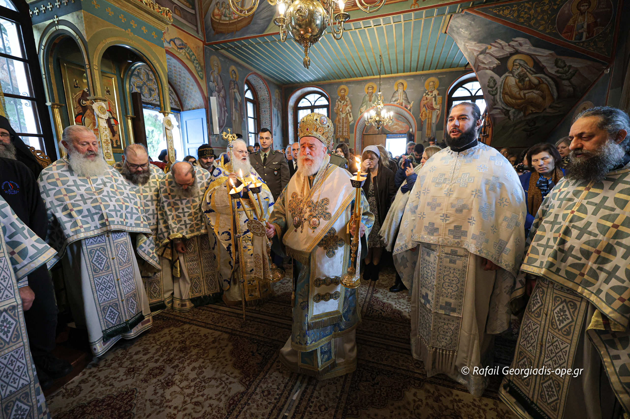 Την πανηγυρική Αρχιερατική Θεία Λειτουργία τέλεσε ο Σεβασμιώτατος Μητροπολίτης Ξάνθης και Περιθεωρίου κ. Παντελεήμων, ο οποίος και κήρυξε το θείο λόγο. Τον Σεβασμιώτατο πλαισίωσε ο Γέροντας Εφραίμ, Βατοπαιδινοί πατέρες και ιερείς από την Ελλάδα και την Κύπρο.