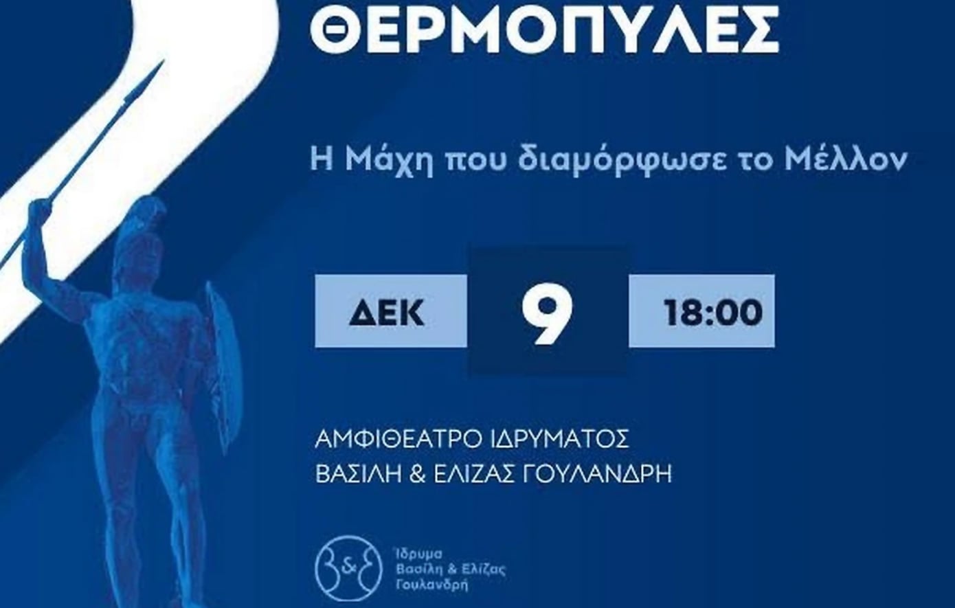 Το Thermopylae Forum διοργανώνει την Τρίτη 9 Δεκεμβρίου 2025 και ώρα 18:00 το απόγευμα στο Αμφιθέατρο του Ιδρύματος Βασίλη & Ελίζας Γουλανδρή, την εκδήλωση με τίτλο «Θερμοπύλες: Η Μάχη που διαμόρφωσε το Μέλλον», φέρνοντας στο επίκεντρο της Αθήνας το διαχρονικό μήνυμα των Θερμοπυλών και ανοίγοντας επίσημα τον δημόσιο διάλογο για την ανάδειξη αυτού του εμβληματικού τόπου.