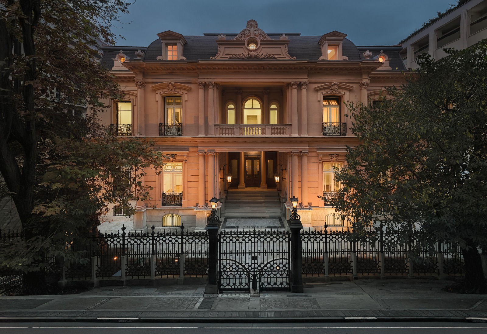 Πρόκειται για ένα εμβληματικό κτήριο στην ιστορική συνοικία του Φραγκομαχαλά, στο κέντρο της πόλης, το αρχικό κέλυφος του οποίου κατασκευάστηκε στον 19ο αιώνα. Το κτήριο αποτελεί εκλεκτικιστικό δείγμα, με νεομπαρόκ, νεοκλασικά και πολλά στοιχεία γαλλικής αρχιτεκτονικής. Αρχικά, το 1840, χρησιμοποιήθηκε ως κατοικία του Jake Abbott. Από το 1863 χρησιμοποιήθηκε ως υποκατάστημα της Οθωμανικής Τραπέζης, στη Θεσσαλονίκη. Ανασχεδιάστηκε το 1890 από τους μηχανικούς Baruch και Amar. Toν κήπο του κοσμούν τα αγάλματα της Οικονομίας και της Τραπεζικής Πίστης.