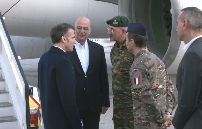 Τον Εμανουέλ Μακρόν υποδέχθηκε στη Σούδα ο Νίκος Δένδιας