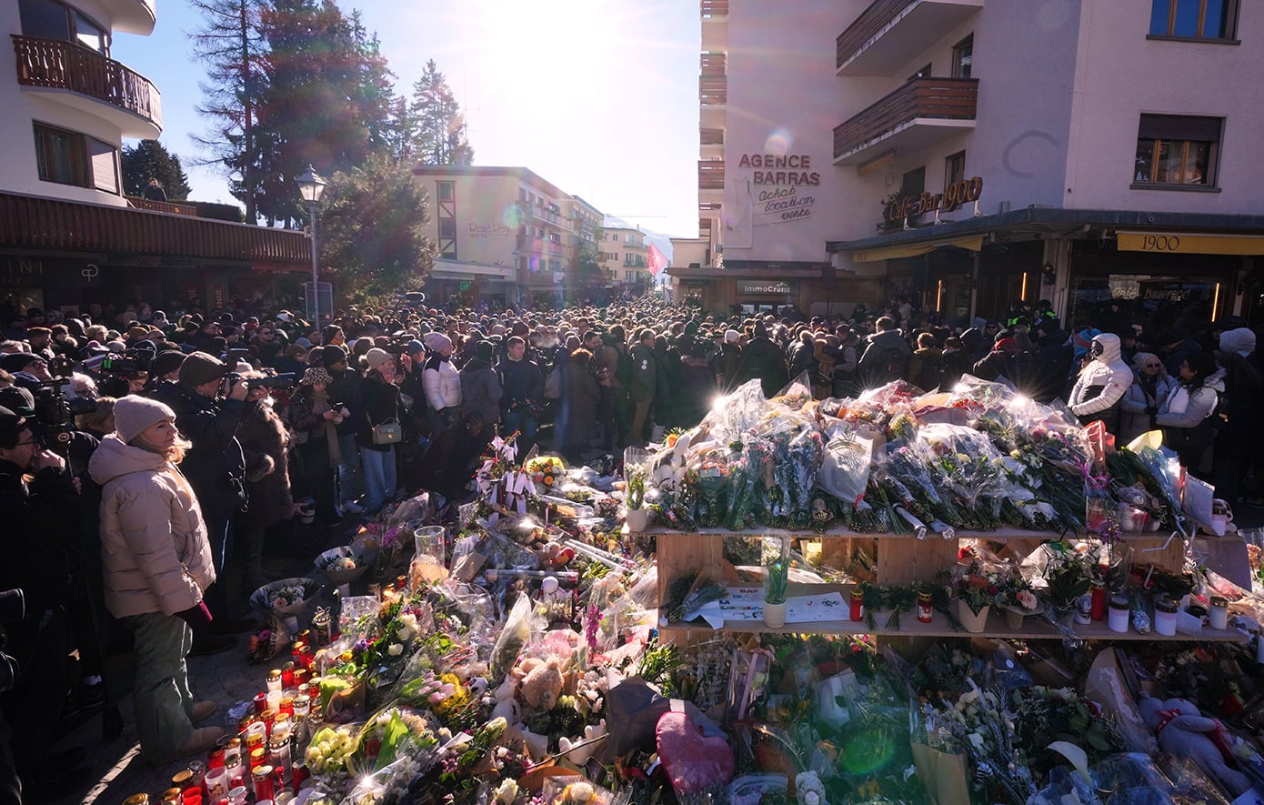 Το αλπικό χωριό, που βρίσκεται στο καντόνι του Βαλέ, κατακλύστηκε χθες από συλλυπητήρια μηνύματα προερχόμενα από ηγέτες και προσωπικότητες -από τον πάπα Λέοντα μέχρι τον Κινέζο πρόεδρο Σι Τζινπίνγκ.