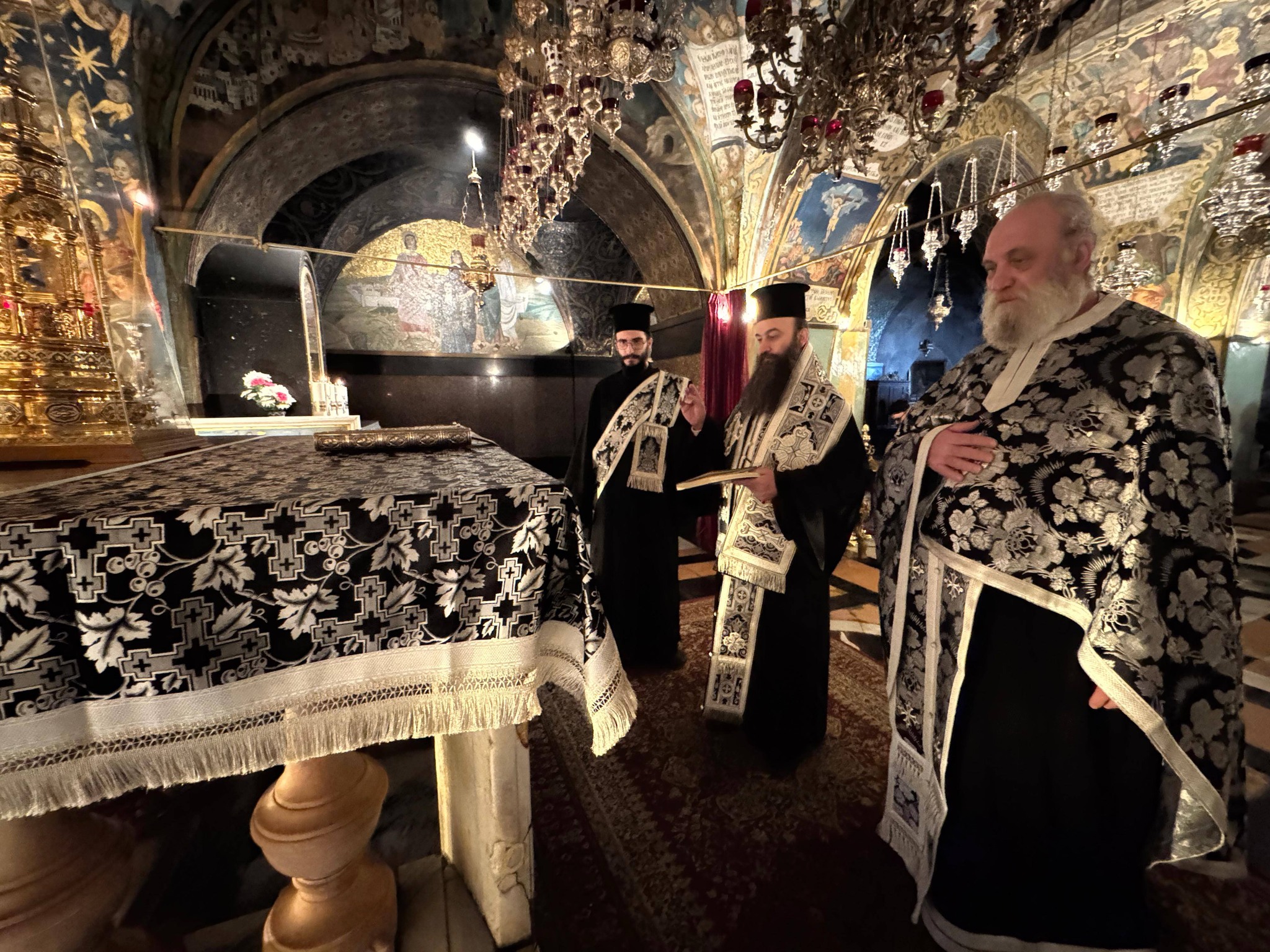 Ο Σεβασμιώτατος Αρχιεπίσκοπος Ιεραπόλεως κ. Ισίδωρος, Γέρων Σκευοφύλαξ του Παναγίου Τάφου τέλεσε σήμερα, Παρασκευή 20 Μαρτίου 2026, Τρισάγιο στον Φρικτό Γολγοθά υπέρ αναπαύσεως της ψυχής του μακαριστού Πατριάρχου Γεωργίας κυρού Ηλία Β’ ο οποίος εκοιμήθη εν Κυρίω το βράδυ της Τρίτης, 17 Μαρτίου 2026, σε ηλικία 93 ετών.