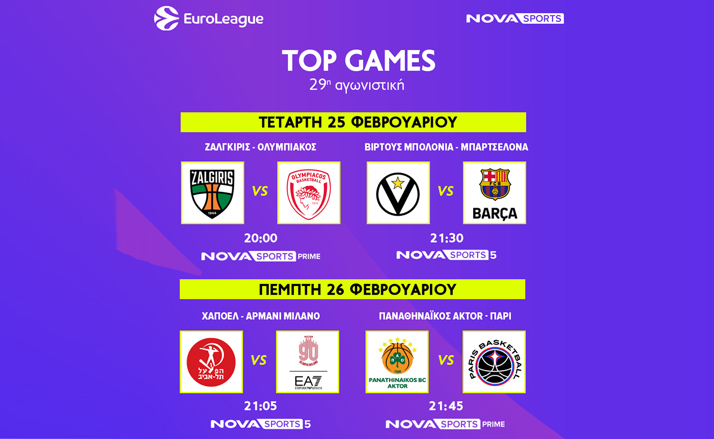 Καταιγιστική μπασκετική δράση έρχεται και πάλι στις οθόνες των συνδρομητών με EuroLeague & EuroCup Γυναικών στο παρκέ του Novasports! Η EuroLeague, η κορυφαία ευρωπαϊκή διασυλλογική διοργάνωση, επιστρέφει στην αγωνιστική δράση μετά τη διακοπή λόγω των υποχρεώσεων των ομάδων στα Κύπελλα των χωρών τους με τις αναμετρήσεις της 29ης αγωνιστικής να διεξάγονται Τετάρτη (25/2) και Πέμπτη (26/2), προκειμένου να διεξαχθούν και τα παράθυρα των Εθνικών ομάδων της FIBA για τα προκριματικά του FIBA World Cup 2027.